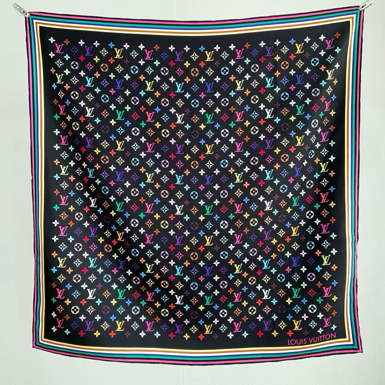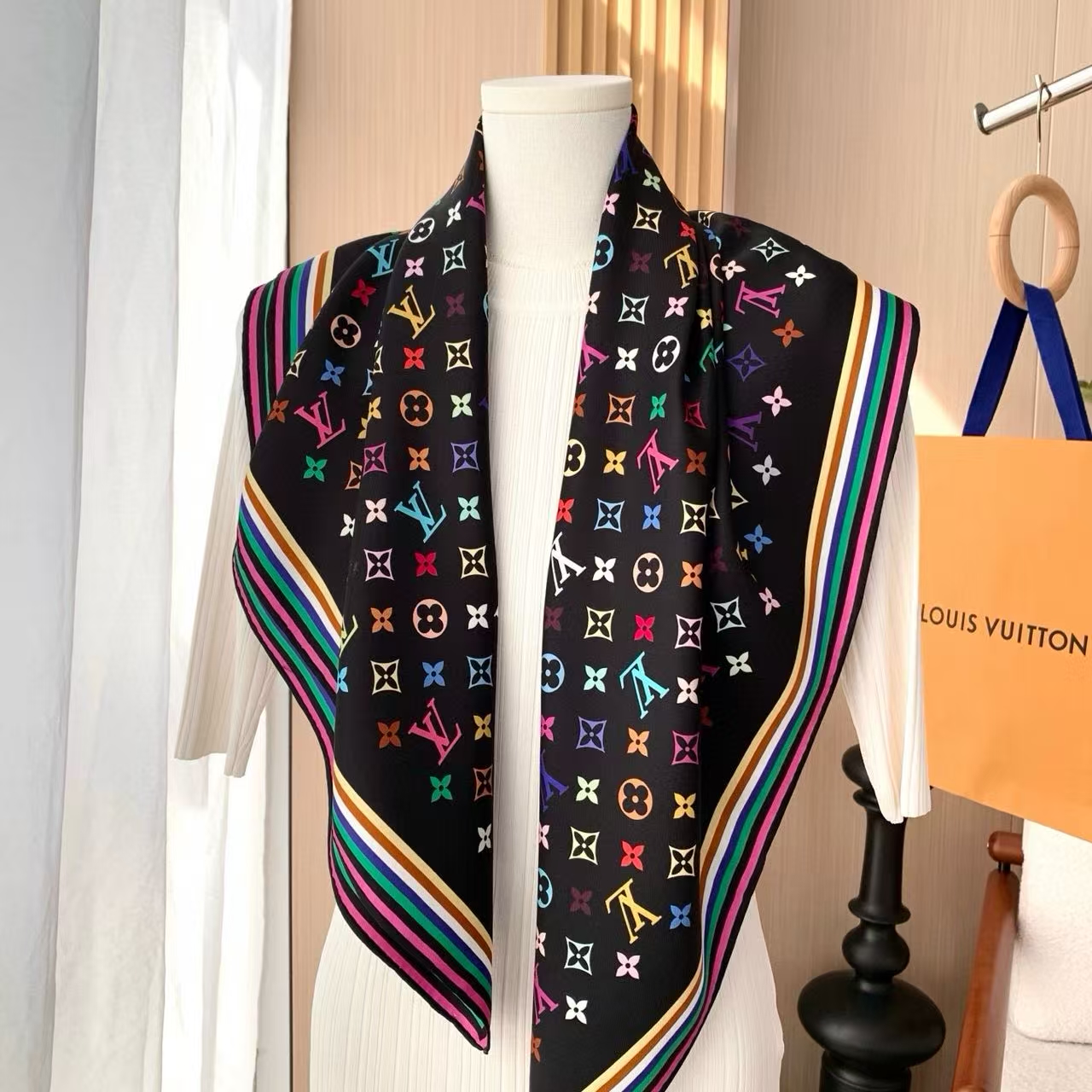 روسری زنانه برند لوئی ویتون مدل ۲۰۲۵ - ابعاد مربعی ۹۰ سانتیمتری، شال گردن